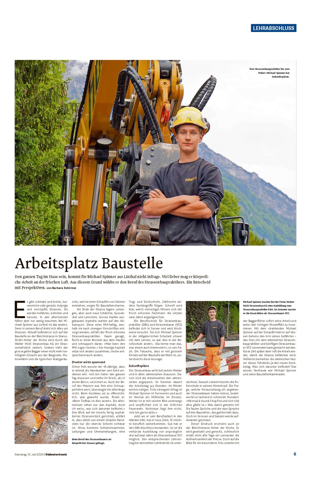 Nach der Ausbildung zum Strassenbauer EFZ zwischen 2014 und 2017 hat Lukas die Vorarbeiter- und Polierschule in Sursee besucht. Nun kann er, nach bestandener Prüfung, diesen Herbst das Diplom zum eidgenössisch diplomierten Strassenbaupolier entgegennehmen.